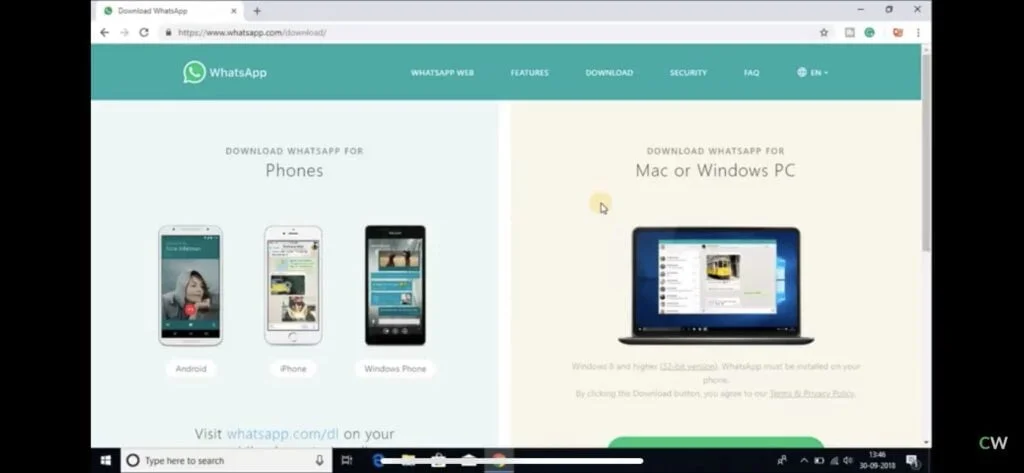 - The official site of whatsapp will be displayed in which there will be 2 options: Download Whatsapp for Phones / Download Whatsapp for MAC or Windows PC.