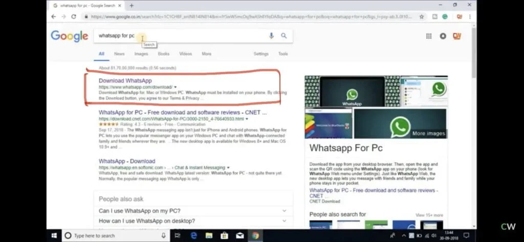 - After the EXE file for whatsapp gets downloaded, which will be shown just above the windows icon on the down-left corner.