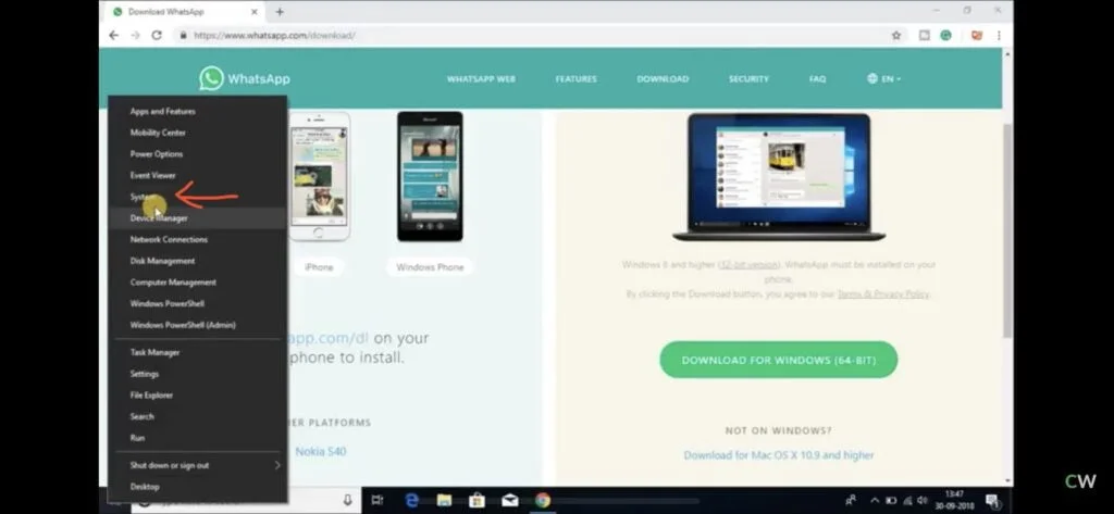 - As per your system type, click on Download Whatsapp For MAC or Windows PC – 64 bit.