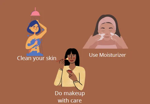 • Do Makeup with Care: Use makeup that is suitable for your skin type. Remove makeup before going to sleep. Avoid wearing makeup for a two day or a day to give your skin a break.